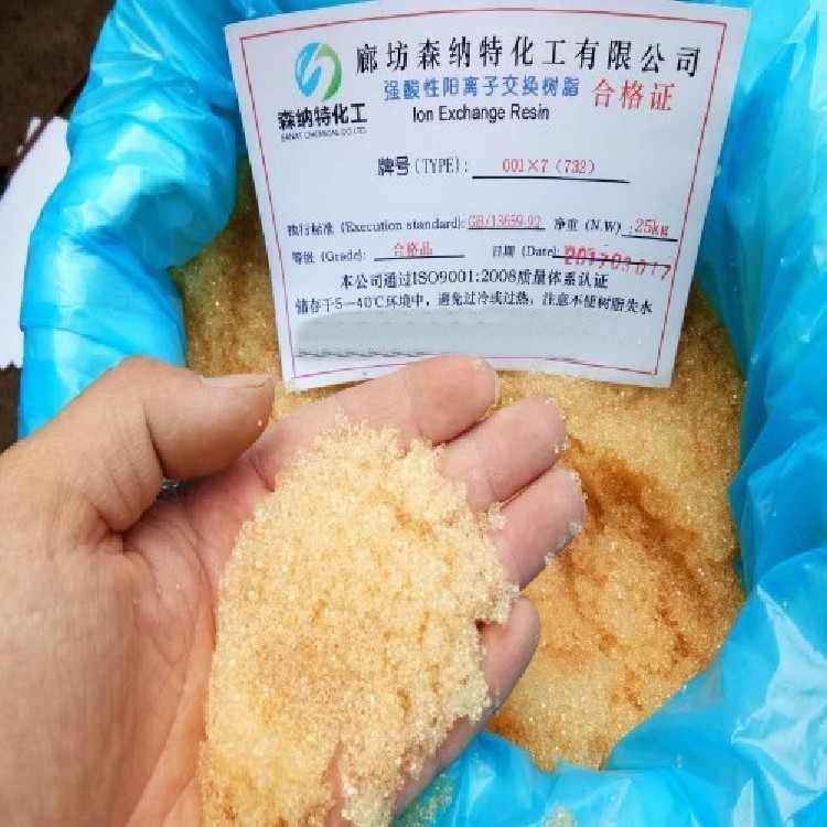 详细信息| 询价留言离子型:阳离子交换树脂 酸碱性:酸性离子交换树脂 含量≥:11 % 外观:金黄色 颗粒尺度:0.315-1.25 溶解性:不溶解 用途:钠型阳离子交换树脂 CAS:合格 牌号:钠型阳离子交换树脂 品牌:森纳特 型号:001*7 牌号:钠型阳离子交换树脂 钠型阳离子交换树脂厂家