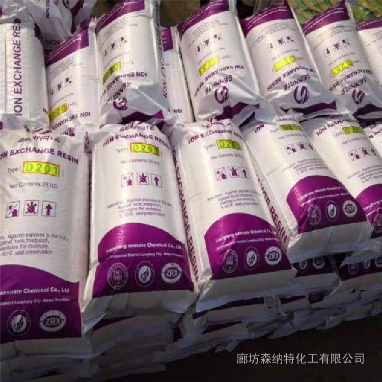 D201是在大孔结构的苯乙烯-二乙烯苯共聚体上带有季铵基[-N(CH3)3OH]的阴离子交换树脂。主要用于纯水、高纯水制备及凝结净化,还用于废水处理和重金属回收。